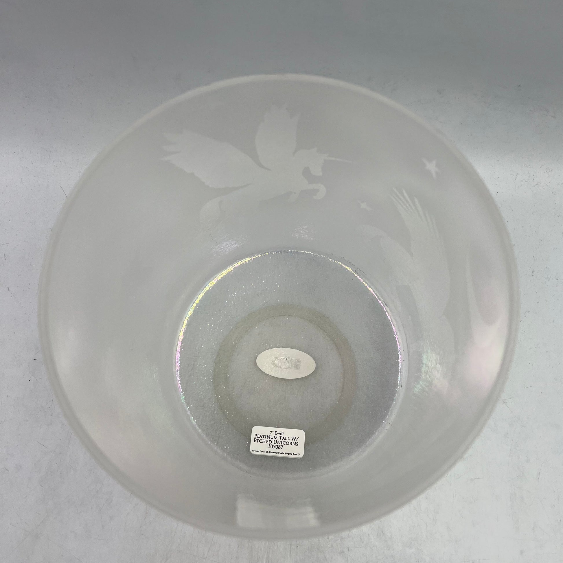 Platinum Pastel rainbow elegance is achieved in our yin energy Platinum Bowl that stimulates the Divine Feminine, relieves stress and depression and aligns the intuitive emotional body. This stunning alchemical bowl unifies astral and physical body fields in a sonic opalescent rainbow bath - a super harmonizer/balancer. It has a calming, steadying, grounding effect for perfect attunement resonance. A beautiful addition to any sacred union celebration.