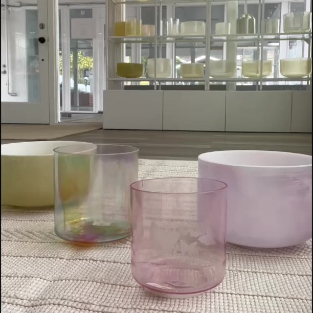 Platinum pastel rainbow elegance is achieved in our yin energy Platinum Bowl that stimulates the Divine Feminine, relieves stress and depression and aligns the intuitive emotional body. This stunning alchemical bowl unifies astral and physical body fields in a sonic opalescent rainbow bath - a super harmonizer/balancer. It has a calming, steadying, grounding effect for perfect attunement resonance. A beautiful addition to any sacred union celebration.